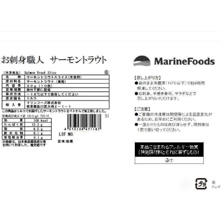 【お刺身職人シリーズ】サーモントラウトスライス 6g 10枚入
