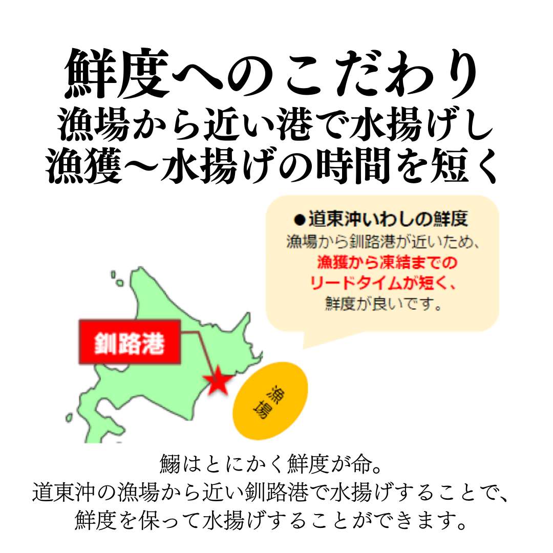 鰯はとにかく鮮度が命。道東沖の漁場から近い釧路港で水揚げすることで、鮮度を保って水揚げすることができます。