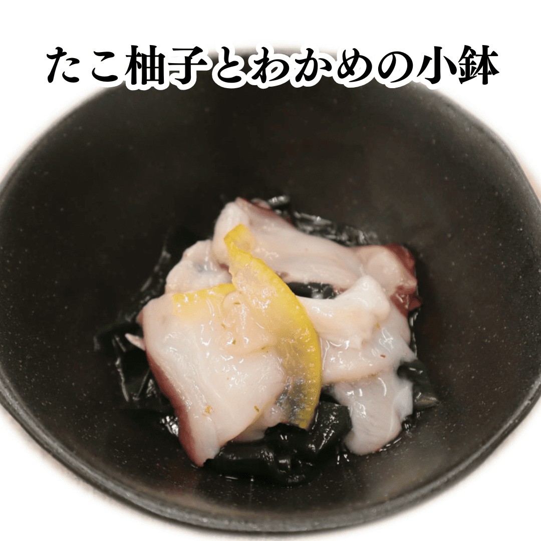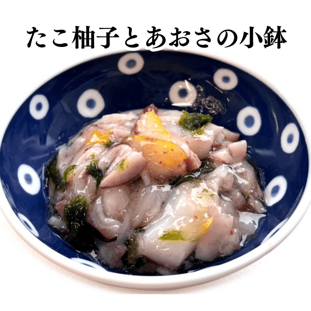 北海道産の水たこを国産のゆず皮を和えピリ辛な味に仕上げました。