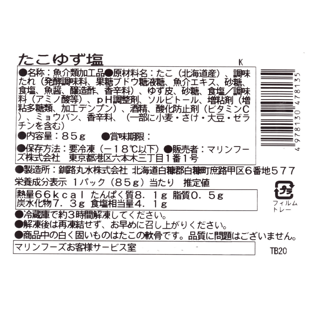北海道産 たこゆず塩 小分けタイプ 85g
