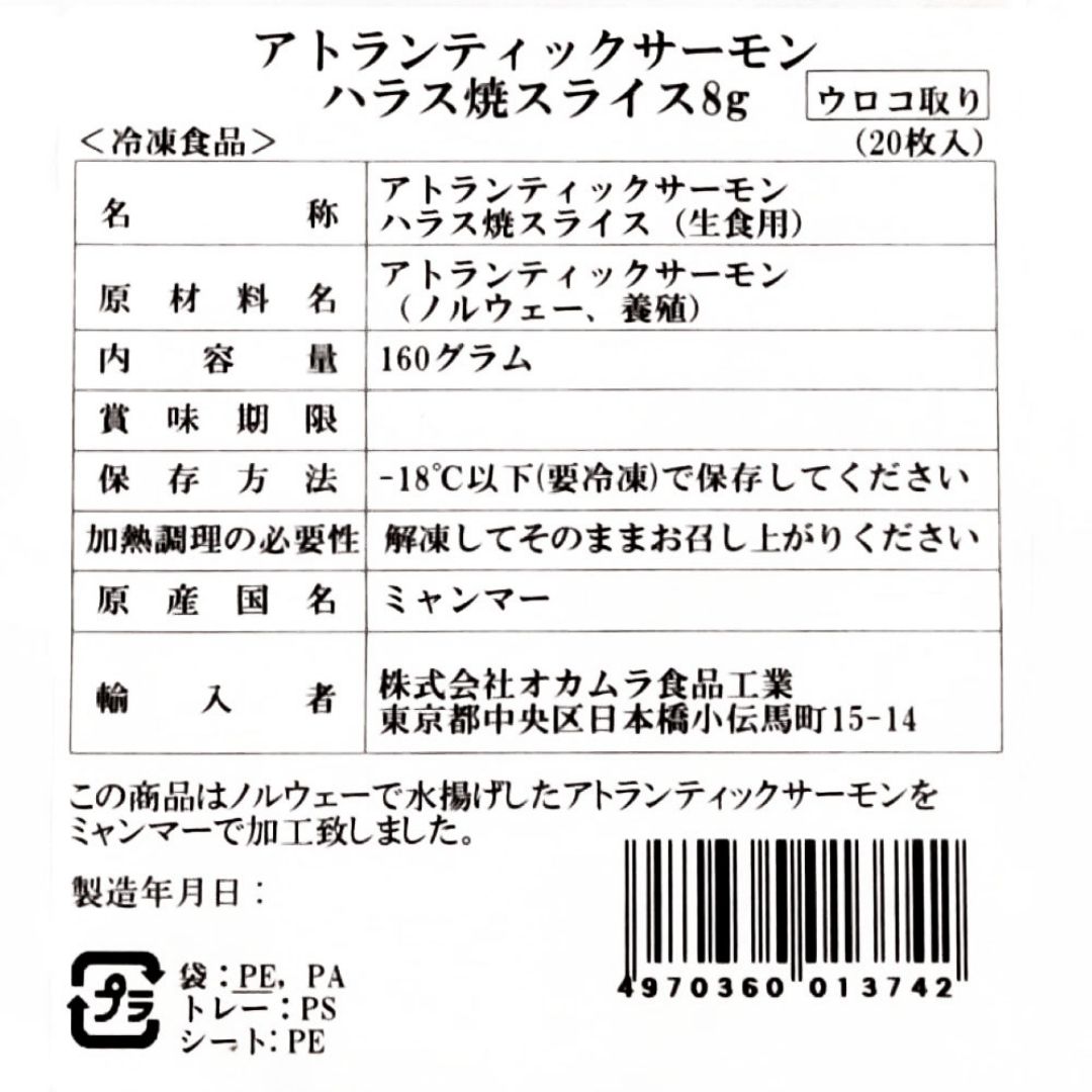 アトランティックサーモン焼ハラススライス 8g 20枚入
