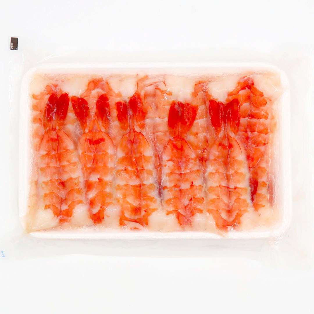 ブラックタイガー海老を寿司用に開きました。 バナメイ海老と比べて味が濃く、食感も硬く、加熱時に濃いオレンジ色になります。