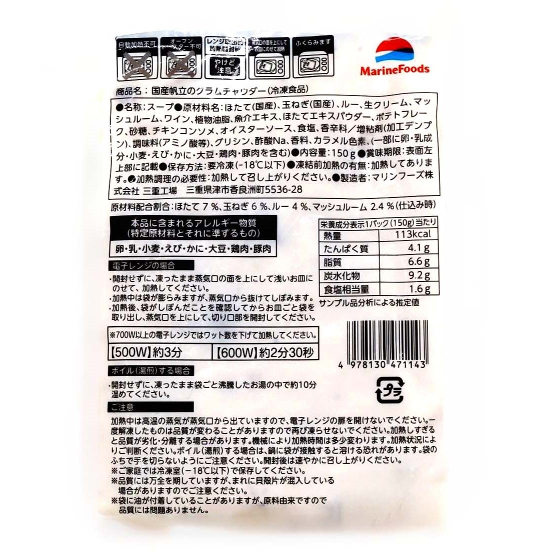 | 備考 | 加熱中は高温の蒸気が蒸気口から出ていますので、電子レンジの扉を開けないでください。 一度解凍したものは品質が変わることがありますので再び凍らせないでください。 加熱しすぎると品質が劣化・分離する場合があります。 機械により加熱時間は多少変わります。加熱状況によりご判断ください。 ボイル(湯煎)する場合は、鍋に袋が接触すると溶ける恐れがあります。袋のふちで手を切らないようにご注意ください。 開封後は速やかに召し上がりください。 |