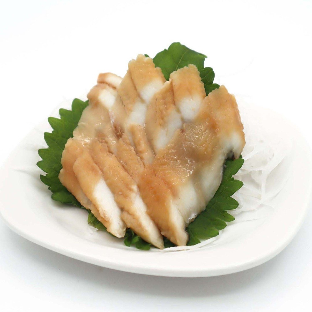 中国産真穴子を醤油、砂糖、酒、みりん、昆布の無添加のタレで煮込み、スライスにしました。