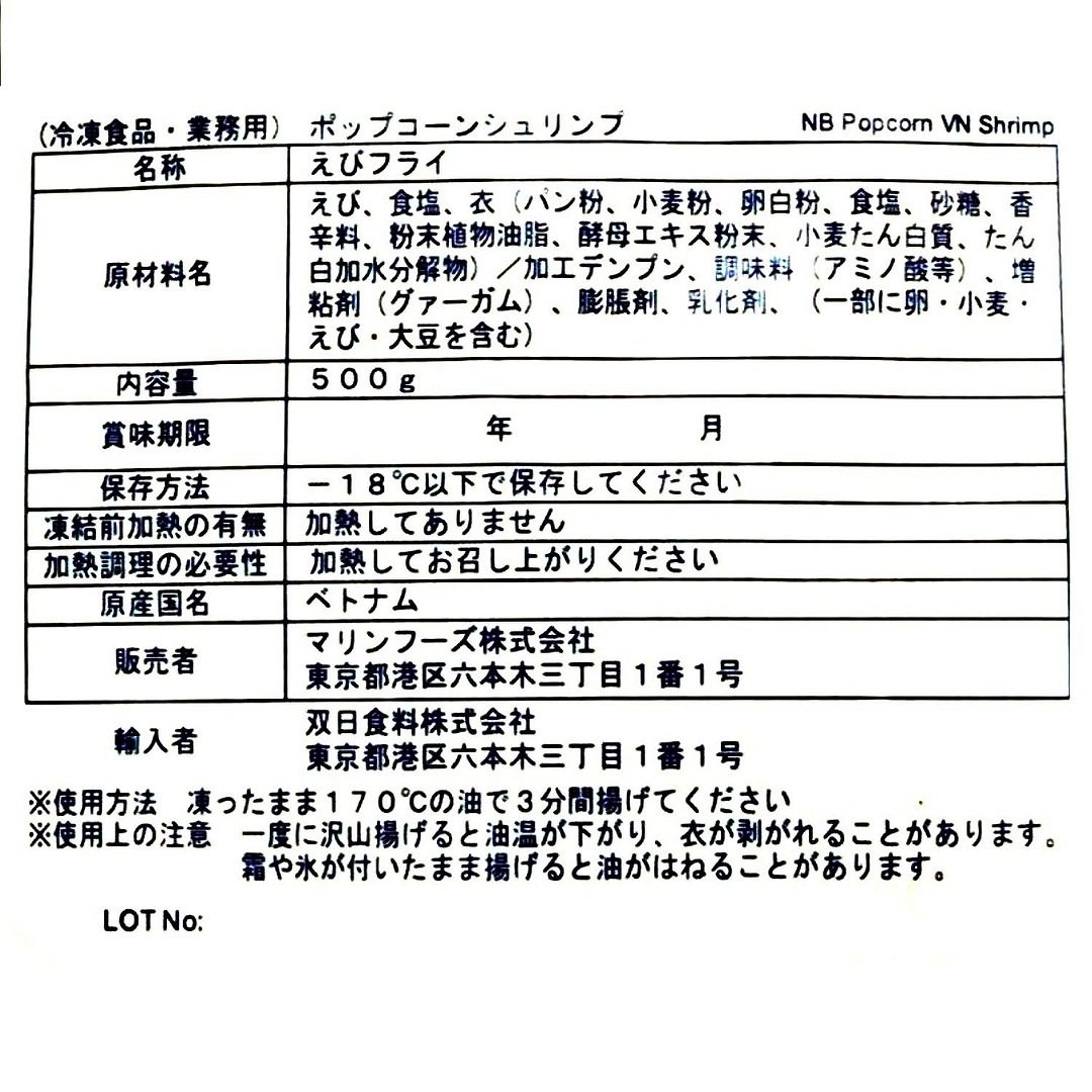 ポップコーンシュリンプ 500g