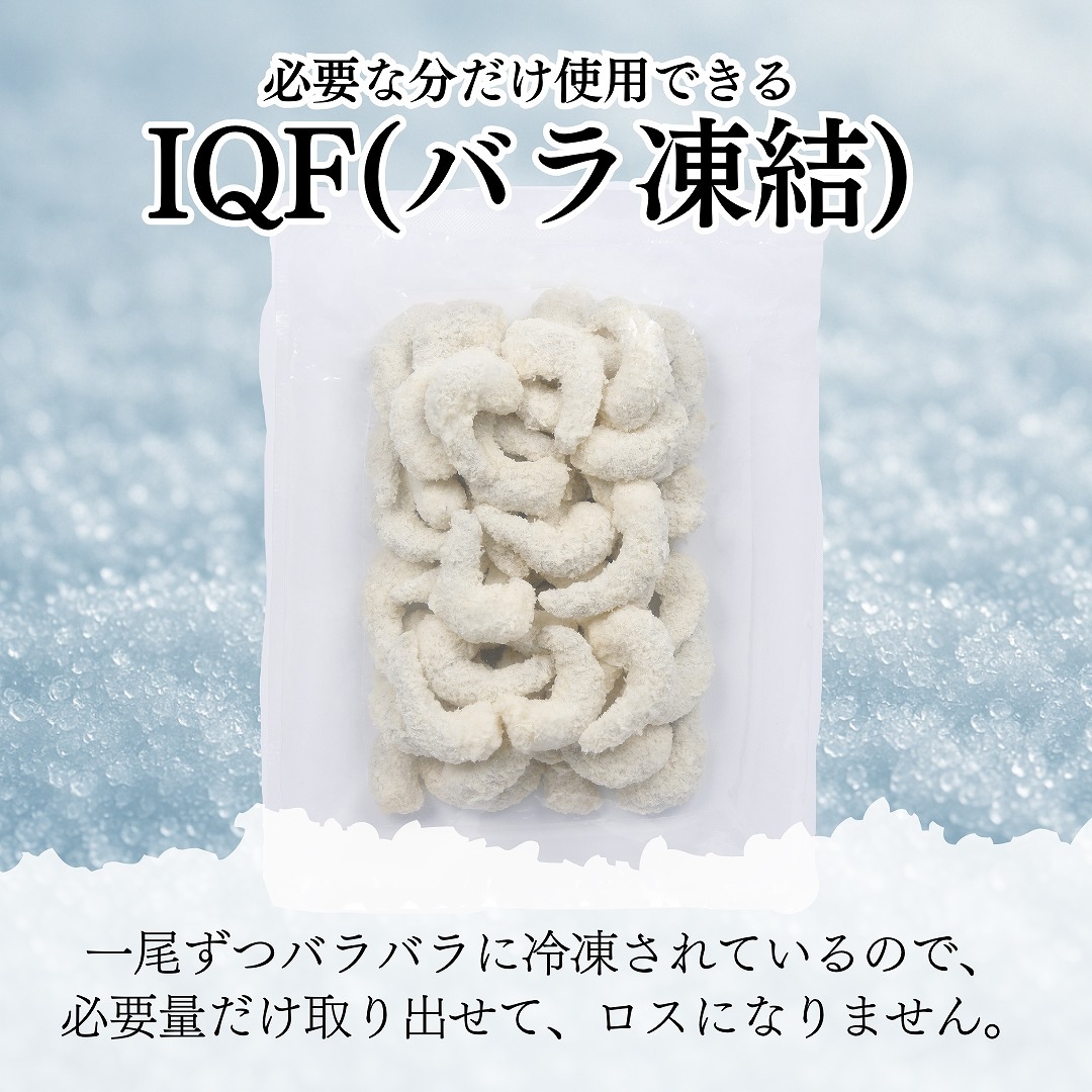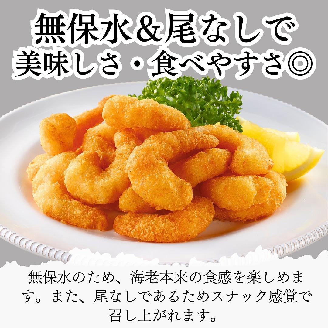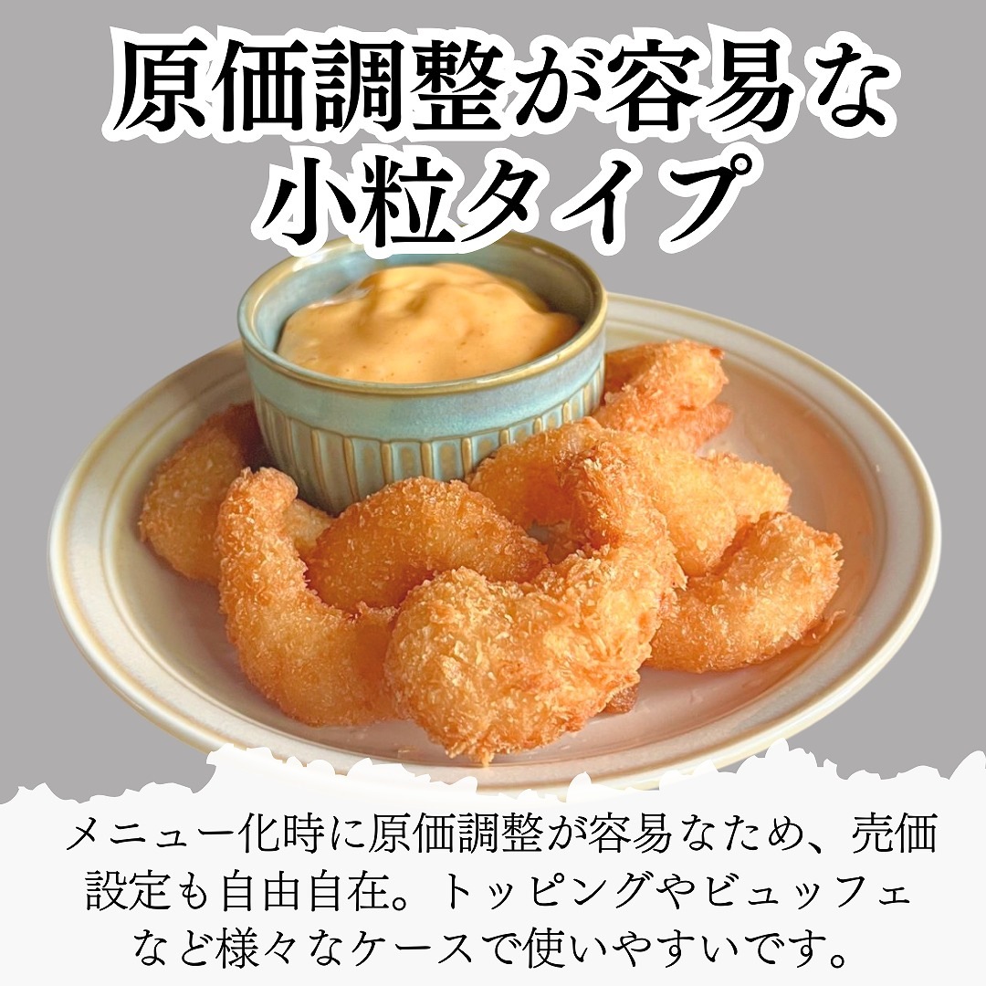 色々なメニューに使用できるポップコーンシュリンプです。尾無しで無保水のため海老本来の食感を楽しめます。
